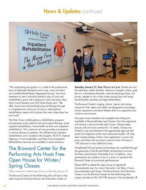 The Holy Cross multidisciplinary rehabilitation program available at BrowardCenter.org/Classes. First time registrants