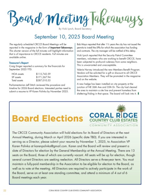 Board Elections CORAL R DGE