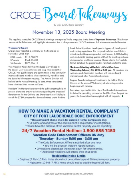16 CORAL RIDGE COUNTRY CLUB ESTATES COMMUNITY ASSOCIATION