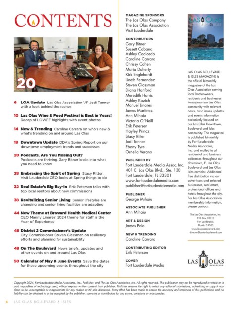 Copyright 2024, Fort Lauderdale Media Associates, Inc., Publisher, and The Las Olas Association, Inc. All rights reserved. This publication may not be reproduced in whole or in