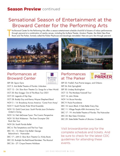 he Broward Center for the Performing Arts offers a season entertainment schedule chock-full of dozens of indoor performances