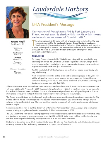President, LHIA important event will be the Lauderdale Harbors Annual Residents meeting on
