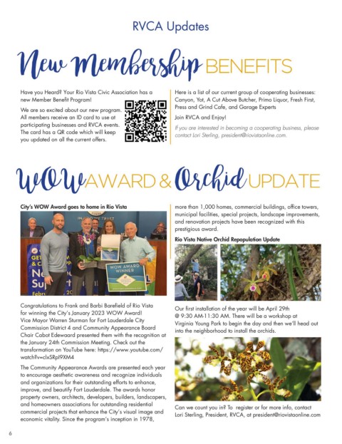 commercial projects that enhance the City’s visual image and Lori Sterling, President, RVCA, at president@riovistaonline.com
