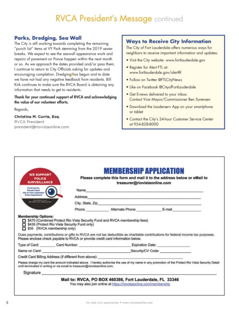 Kirk continues to make sure the RVCA Board is obtaining any • Like on Facebook @CityofFortLauderdale