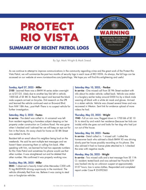accessed on our website at www.riovistaonline.com/patrol-logs. We hope you will find this enlightening and useful.