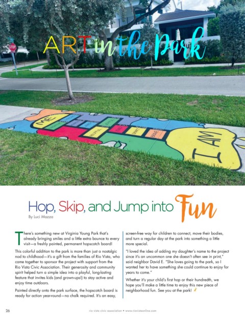 Painted directly onto the park surface, the hopscotch board is neighborhood fun. See you at the park!