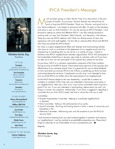 treasurer@riovistaonline.com our neighborhood. Here are a few of our more active committees which may be a