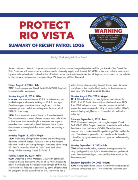 Vista Patrol, we will summarize the past two months of security logs in each issue of RIO VISTA. In the past, only the most recent